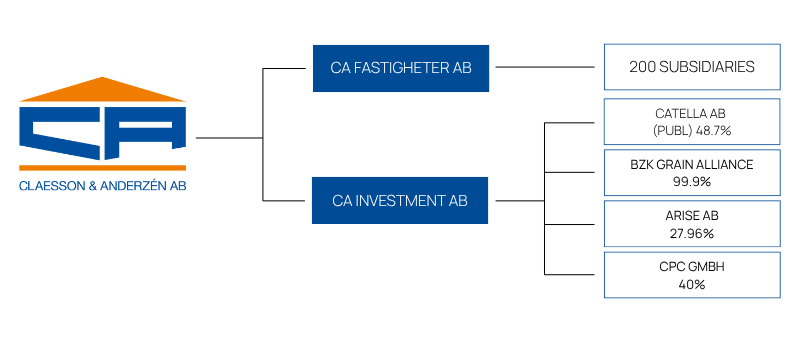 CA AB is divided into two lines of business, real estate and other investments, via its subsidiaries CA Fastigheter AB and CA Investment AB.
